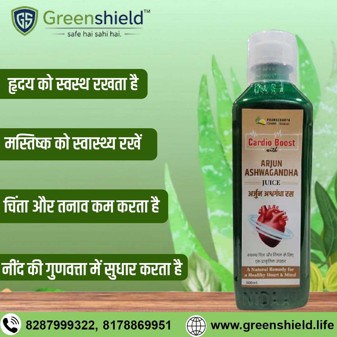 Arjun Ras is an Ayurvedic juice which helps to control cholesterol levels and blood pressure. It gives strength to the heart and is a great cardiac tonic.
